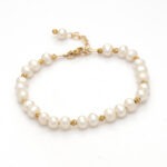 צמיד פנינים לבנות עם כדורי זהב.