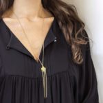 שרשרת זהב אוריינטלית ארוכה עם תליון פיליגרין