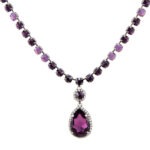 שרשרת יוקרתית של קריסטלי סברובסקי סגולים עם תליון טיפה גדול מוקף זירקונים לבנים