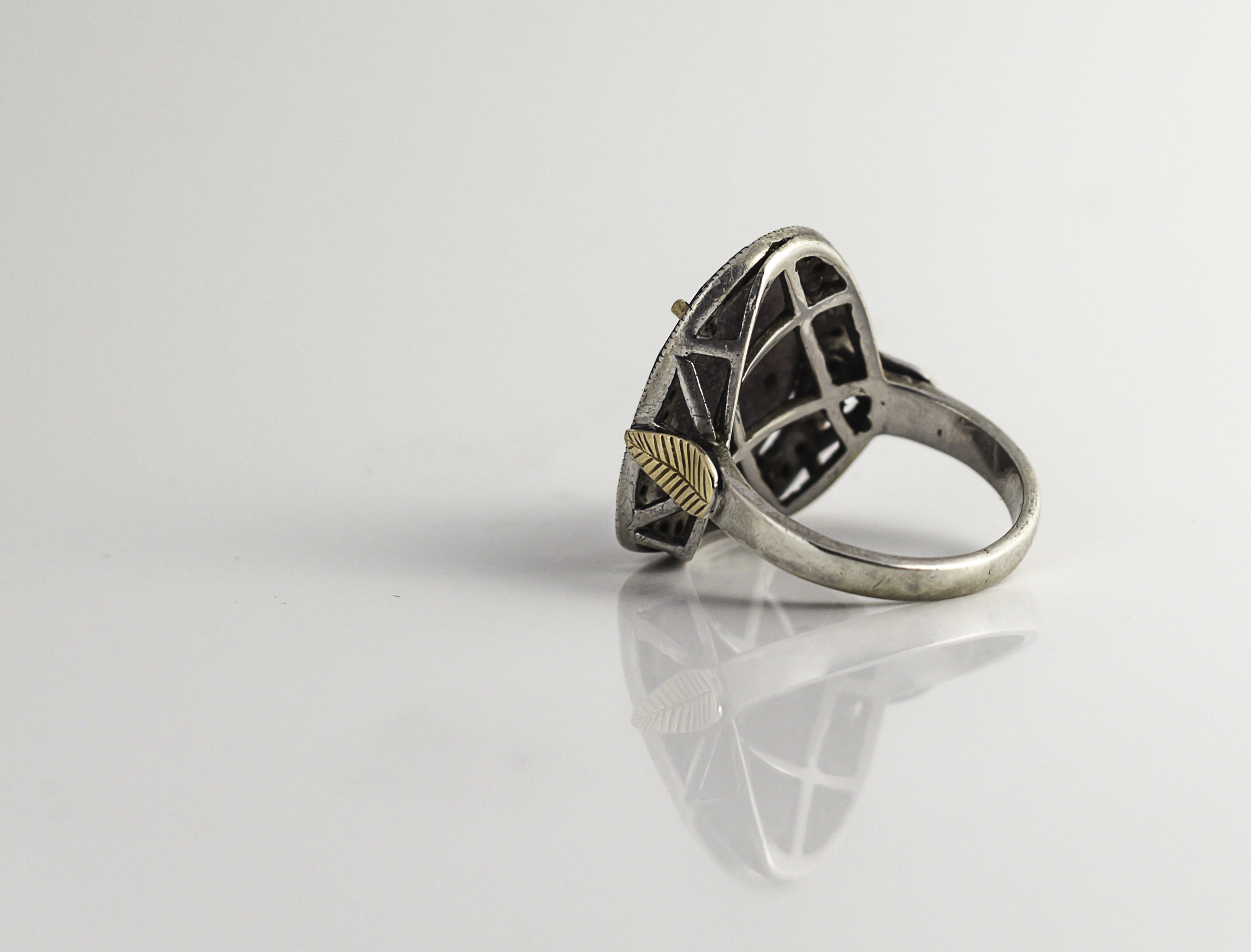 הטבעת עשויה מכסף 925 ומשני עלי זהב בצדדיה.