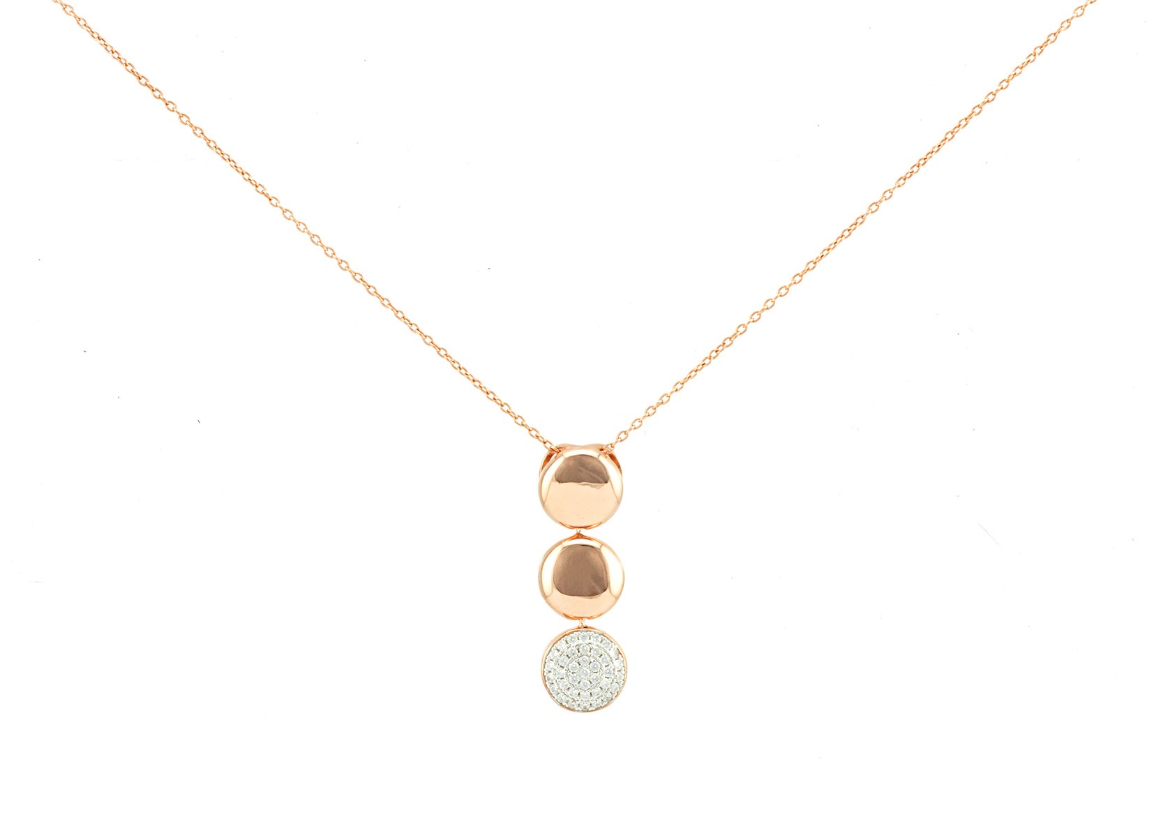 שרשרת גולדפילד עם תליון של שלושה עיגולים בקוטר 1 ס"מ האחד.