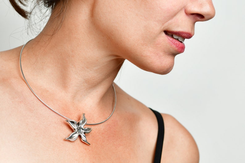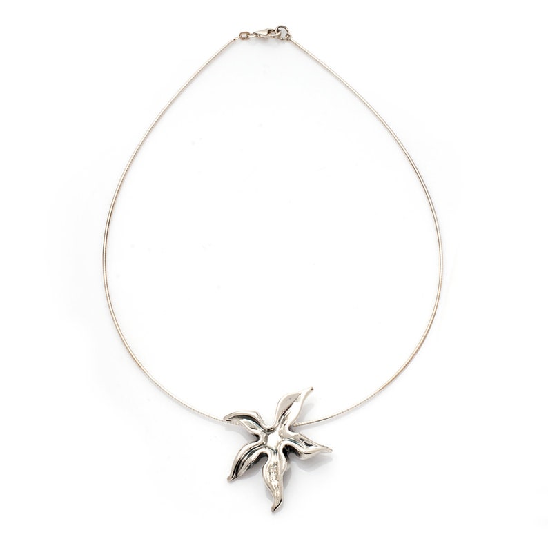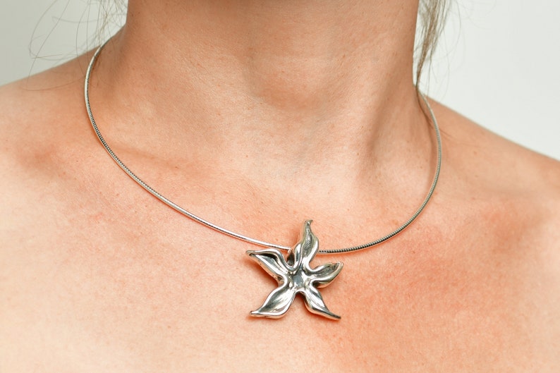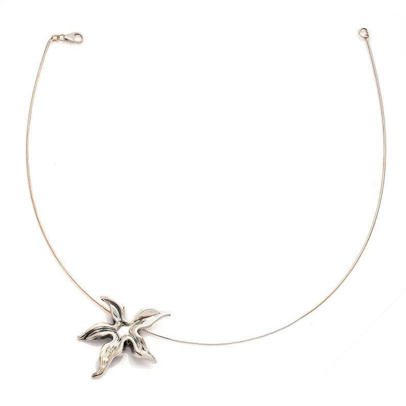 שרשרת צ'וקר עשויה מכבל כסף 925. שרשרת מינימליסטית יפה עם תליון בצורת כוכב ים.