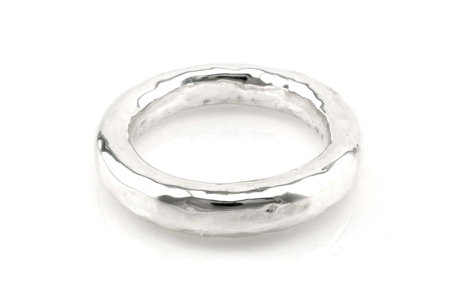 צמיד כסף עבה ובעל נוכחות מרשימה. עשוי מצינור במראה לא אחיד.