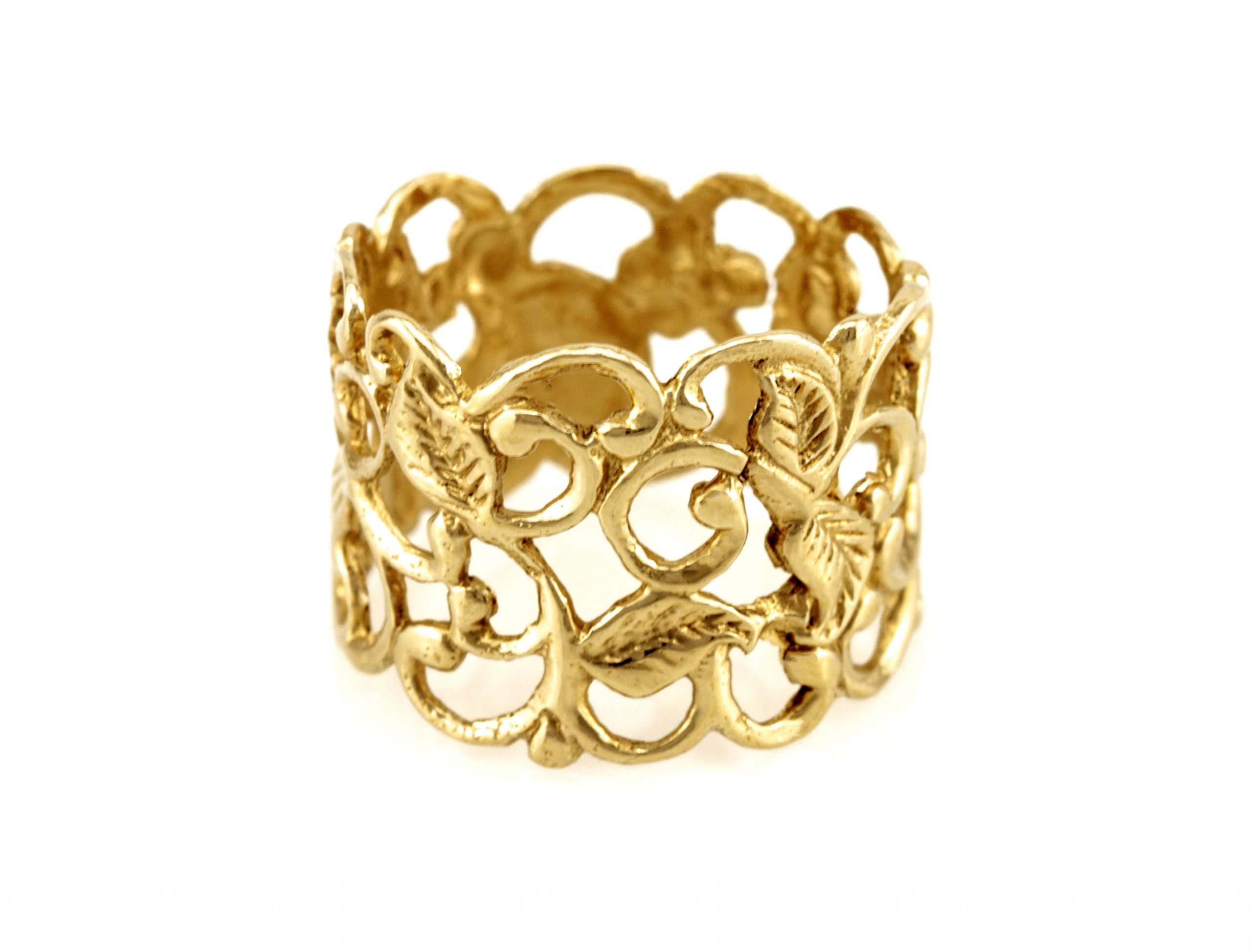 טבעת נישואין 14K בדוגמת תחרת עלים