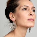 “עגילי נברשת ארוכים מכסף בדוגמת תחרה. עגילים בוהמיים גדולים קלי משקל.” נוסף לסל הקניות.