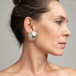 עגילי כיפה אמנותיים גדולים עם קליפס, עשויים מכסף סטרלינג בתלת מיימד .